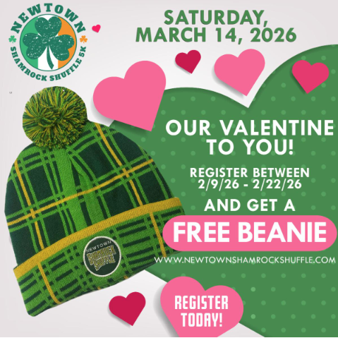 Register for the Newtown Shamrock Shuffle 5K between 2/9 and 2/22 and you'll score a FREE BEANIE —because... well... we love you ??