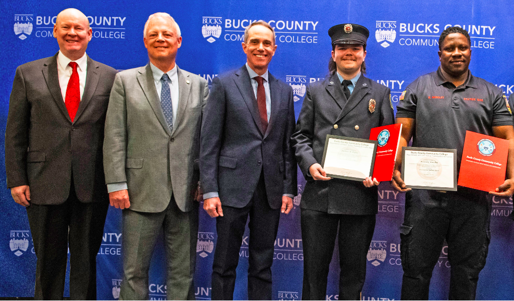 Bucks County Community College¸ the largest provider of fire and emergency services training and certification in Pennsylvania, graduated 62 volunteer firefighters in a December 16 ceremony on the Newtown Campus. The firefighters received certificates of completion from Dr. Patrick M. Jones, President & CEO of the College, and were congratulated by Pennsylvania State Senator Steve Santarsiero (D-10) and Pennsylvania State Representative Perry Warren (D-31), who each addressed the audience in the Zlock Performing Arts Center. The training took place at the Lower Bucks County Public Safety Training Center in Croydon and the Bucks County Public Safety Training Center in Doylestown. The national certification enables the volunteers to help protect their communities and fill the critical shortage of first responders.