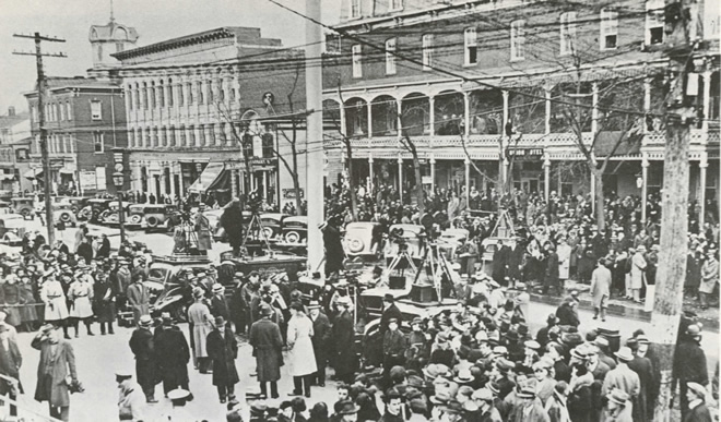 The scene in front of the Flemington court house during the Charles Lindbergh baby kidnapping trial in 1935. Photo from the collections of the Hunterdon County Historical Society.